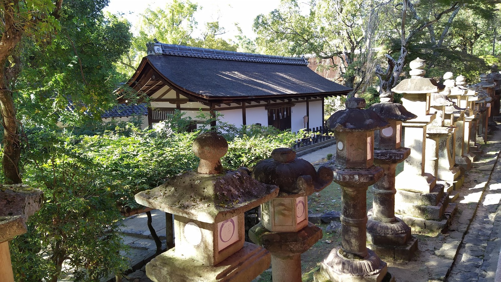 A gentle walk up the hill and we're at the Kasuga Taisha Shrine. What makes this Shrine unique are the thousands of Stone Lanterns that line the paths to it. According to the historians, there are at least 3000 of these Stone Lanterns in the vicinity of the Shrine but I stopped counting at around 200+...